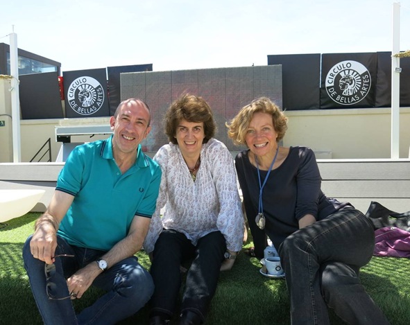 The photo shows her with the two directors of TANDEM, Matilde Cerrolaza and Begoña Llovet on the terrace of the Círculo de Bellas Artes.