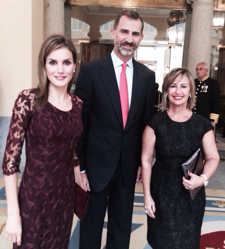 Durante la ceremonia, Don Felipe y Doña Letizia aprovecharon el momento para saludar a cada uno de los miembros del Patronato del Instituto Cervantes, entre ellos a nuestra presidenta.