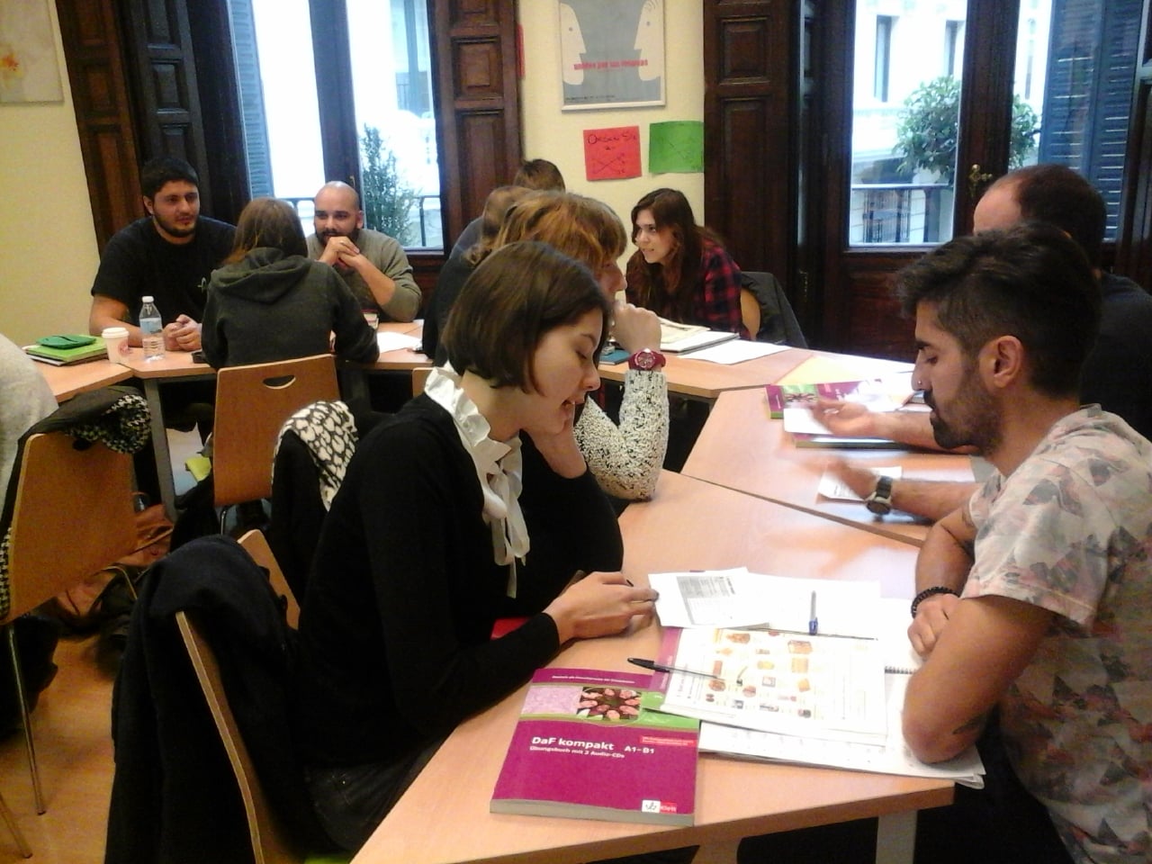 Dos de nuestros grupos de estudiantes en TANDEM Madrid se han unido para realizar una actividad de intercambio de idiomas juntos. Se trata del grupo de estudiantes alemanas de Merian-Schule, que han venido por primera vez a nuestra escuela para hacer un curso de español. Con ellos han estado los estudiantes del grupo Azubis, un grupo de jóvenes españoles que empiezan a estudiar alemán.